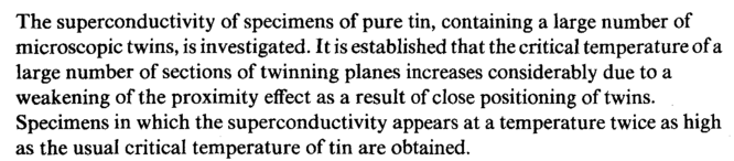 The superconductivity of specimens of pure tin, containing a large number of microscopic twins, is investigated. It is established that the critical temperature of a large number of sections of twinning planes increases considerably due to a weakening of the proximity effect as a result of close positioning of twins. Specimens in which the superconductivity appears at a temperature twice as high as the usual critical temperature of tin are obtained.