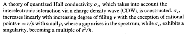 A theory of quantized Hall conductivity σΗ which takes into account the interelectronic interaction via a charge density wave (CDW), is constructed. σΗ increases linearly with increasing degree of filling ν with the exception of rational points v — r/p with small p> where a gap arises in the spectrum, while σΗ exhibits a singularity, becoming a multiple of e2/h.