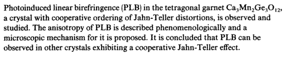 Photoinduced linear birefringence (PLB) in the tetragonal garnet óÁ3íÐ20ÅÚ012, a crystal with cooperative ordering of Jahn-Teller distortions, is observed and studied. The anisotropy of PLB is described phenomenologically and a microscopic mechanism for it is proposed. It is concluded that PLB can be observed in other crystals exhibiting a cooperative Jahn-Teller effect.