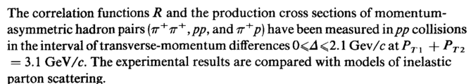 The correlation functions R and the production cross sections of momentum-asymmetric hadron pairs (π+π+,ρρ, and v+p) have been measured inpp collisions in the interval of transverse-momentum differences 0<Л <2.1 Gev/c at Pr l + PT2 = 3.1 GeV/с. The experimental results are compared with models of inelastic Darton scattering.
