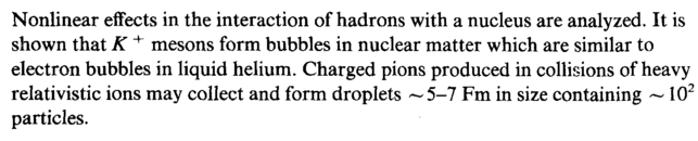 Nonlinear effects in the interaction of hadrons with a nucleus are analyzed. It is shown that К + mesons form bubbles in nuclear matter which are similar to electron bubbles in liquid helium. Charged pions produced in collisions of heavy relativistic ions may collect and form droplets — 5-7 Fm in size containing ~ iO2 particles.