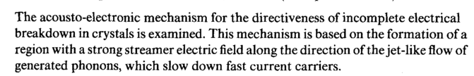 The acousto-electronic mechanism for the directiveness of incomplete electrical breakdown in crystals is examined. This mechanism is based on the formation of a region with a strong streamer electric field along the direction of the jet-like flow of generated phonons, which slow down fast current carriers.