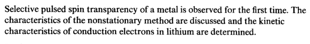 Selective pulsed spin transparency of a metal is observed for the first time. The characteristics of the nonstationary method are discussed and the kinetic characteristics of conduction electrons in lithium are determined.