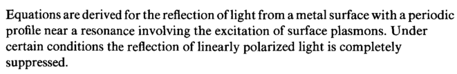 Equations are derived for the reflection of light from a metal surface with a periodic profile near a resonance involving the excitation of surface plasmons. Under certain conditions the reflection of linearly polarized light is completely suppressed.