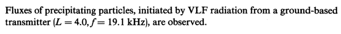 Fluxes of precipitating particles, initiated by VLF radiation from a ground-based transmitter [L = 4.0,/ = 19.1 kHz), are observed.
