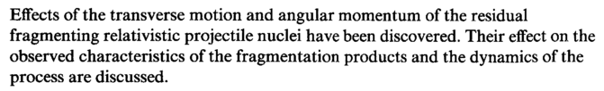 Effects of the transverse motion and angular momentum of the residual fragmenting relativistic projectile nuclei have been discovered. Their effect on the observed characteristics of the fragmentation products and the dynamics of the process are discussed.