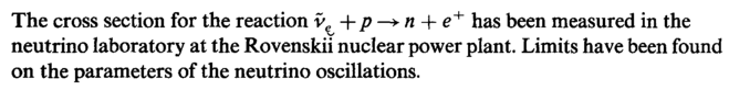 The cross section for the reaction v^+p—>n + e+ has been measured in the neutrino laboratory at the Rovenskii nuclear power plant. Limits have been found on the parameters of the neutrino oscillations.