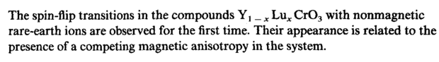 The spin-flip transitions in the compounds Υγ_χ Lux Cr03 with nonmagnetic rare-earth ions are observed for the first time. Their appearance is related to the presence of a competing magnetic anisotropy in the system.