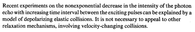Recent experiments on the nonexponential decrease in the intensity of the photon echo with increasing time interval between the exciting pulses can be explained by a model of depolarizing elastic collisions. It is not necessary to appeal to other relaxation mechanisms, involving velocity-changing collisions.