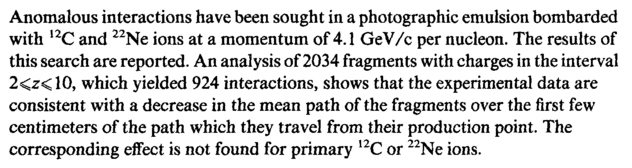 Anomalous interactions have been sought in a photographic emulsion bombarded with nC and 22Ne ions at a momentum of 4.1 GeV/c per nucleon. The results of this search are reported. An analysis of 2034 fragments with charges in the interval 2<z< 10, which yielded 924 interactions, shows that the experimental data are consistent with a decrease in the mean path of the fragments over the first few centimeters of the path which they travel from their production point. The corresponding effect is not found for primary 12C or 22Ne ions.