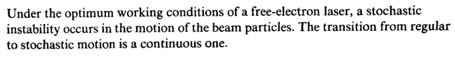 Under the optimum working conditions of a free-electron laser, a stochastic instability occurs in the motion of the beam particles. The transition from regular to stochastic motion is a continuous one.
