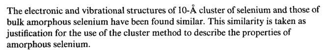 The electronic and vibrational structures of 10-A cluster of selenium and those of bulk amorphous selenium have been found similar. This similarity is taken as justification for the use of the cluster method to describe the properties of amorphous selenium.