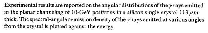 Experimental results are reported on the angular distributions of the γ rays emitted in the planar channeling of 10-GeV positrons in a silicon single crystal 113 //m thick. The spectral-angular emission density of the γ rays emitted at various angles from the crystal is plotted against the energy.