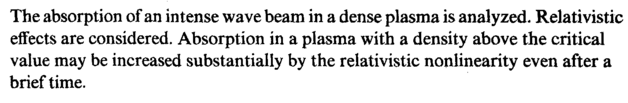 The absorption of an intense wave beam in a dense plasma is analyzed. Relativistic effects are considered. Absorption in a plasma with a density above the critical value may be increased substantially by the relativistic nonlinearity even after a brief time.