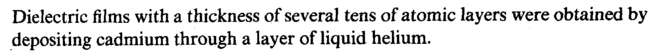 Dielectric films with a thickness of several tens of atomic layers were obtained by depositing cadmium through a layer of liquid helium.