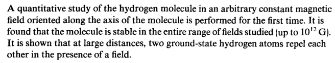 A quantitative study of the hydrogen molecule in an arbitrary constant magnetic field oriented along the axis of the molecule is performed for the first time. It is found that the molecule is stable in the entire range of fields studied (up to 1012 G). It is shown that at large distances, two ground-state hydrogen atoms repel each other in the presence of a field.