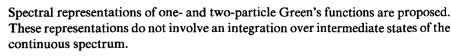 Spectral representations of oneand two-particle Green's functions are proposed. These representations do not involve an integration over intermediate states of the continuous spectrum.