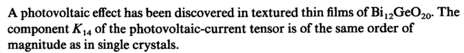 A photovoltaic effect has been discovered in textured thin films of Bi12GeO20. The component Ku of the photovoltaic-current tensor is of the same order of magnitude as in single crystals.