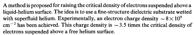 A method is proposed for raising the critical density of electrons suspended above a liquid-helium surface. The idea is to use a fine-structure dielectric substrate wetted with superfluid helium. Experimentally, an electron charge density ~ 8 Χ 109 cm"2 has been achieved. This charge density is —3.5 times the critical density of electrons suspended above a free helium surface.
