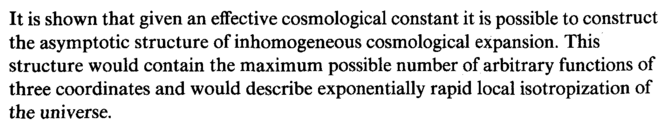 It is shown that given an effective cosmological constant it is possible to construct the asymptotic structure of inhomogeneous cosmological expansion. This structure would contain the maximum possible number of arbitrary functions of three coordinates and would describe exponentially rapid local isotropization of the universe.