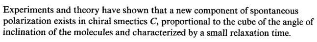 Experiments and theory have shown that a new component of spontaneous polarization exists in chiral smectics C, proportional to the cube of the angle of inclination of the molecules and characterized by a small relaxation time.