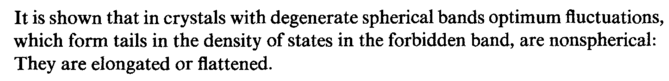 It is shown that in crystals with degenerate spherical bands optimum fluctuations, which form tails in the density of states in the forbidden band, are nonspherical: They are elongated or flattened.