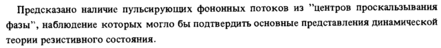 Предсказано наличие пульсирующих фононных потоков из "центров проскальзывания фазы", наблюдение которых могло бы подтвердить основные представления динамической теории резистивного состояния.