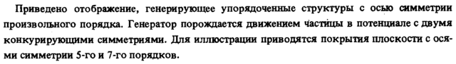 Приведено отображение, генерирующее упорядоченные структуры с осью симметрии произвольного порядка. Генератор порождается движением частицы в потенциале с двумя конкурирующими симметрия ми. Для иллюстрации приводятся покрытия плоскости с осями симметрии 5-го и 7-го порядков.