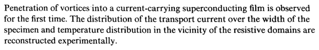 Penetration of vortices into a current-carrying superconducting film is observed for the first time. The distribution of the transport current over the width of the specimen and temperature distribution in the vicinity of the resistive domains are reconstructed experimentally.