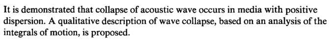 It is demonstrated that collapse of acoustic wave occurs in media with positive dispersion. A qualitative description of wave collapse, based on an analysis of the integrals of motion, is proposed.