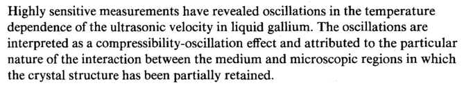 Highly sensitive measurements have revealed oscillations in the temperature dependence of the ultrasonic velocity in liquid gallium. The oscillations are interpreted as a compressibility-oscillation effect and attributed to the particular nature of the interaction between the medium and microscopic regions in which the crystal structure has been partially retained.