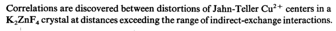 Correlations are discovered between distortions of Jahn-Teller Cu2+ centers in a K2ZnF4 crystal at distances exceeding the range of indirect-exchange interactions.