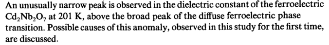 An unusually narrow peak is observed in the dielectric constant of the ferroelectric Cd2Nb207 at 201 K, above the broad peak of the diffuse ferroelectric phase transition. Possible causes of this anomaly, observed in this study for the first time, are discussed.