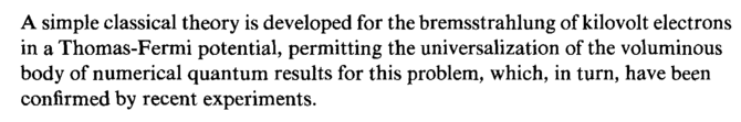 A simple classical theory is developed for the bremsstrahlung of kilovolt electrons in a Thomas-Fermi potential, permitting the universalization of the voluminous body of numerical quantum results for this problem, which, in turn, have been confirmed by recent experiments.