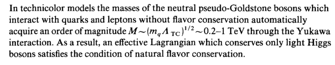 In technicolor models the masses of the neutral pseudo-Goldstone bosons which interact with quarks and leptons without flavor conservation automatically acquire an order of magnitude M~[mq Л TC)1/2~ 0.2-1 TeV through the Yukawa interaction. As a result, an effective Lagrangian which conserves only light Higgs bosons satisfies the condition of natural flavor conservation.