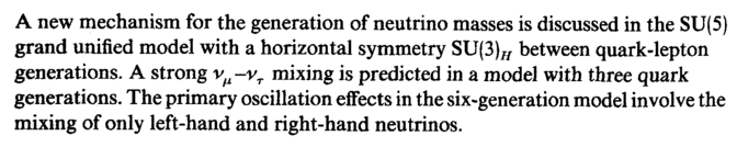 A new mechanism for the generation of neutrino masses is discussed in the SU(5) grand unified model with a horizontal symmetry SU(3)H between quark-lepton generations. A strong νμ~ντ mixing is predicted in a model with three quark generations. The primary oscillation effects in the six-generation model involve the mixing of only left-hand and right-hand neutrinos.