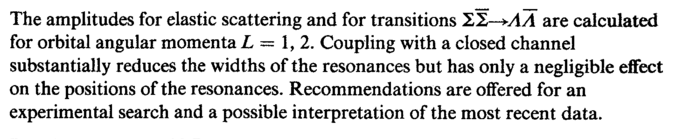 The amplitudes for elastic scattering and for transitions ΣΣ—+ΛΛ are calculated for orbital angular momenta L = 1,2. Coupling with a closed channel substantially reduces the widths of the resonances but has only a negligible effect on the positions of the resonances. Recommendations are offered for an experimental search and a possible interpretation of the most recent data.