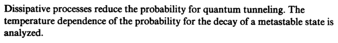Dissipative processes reduce the probability for quantum tunneling. The temperature dependence of the probability for the decay of a metastable state is analyzed.
