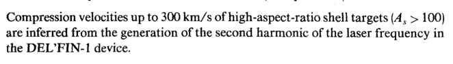 Compression velocities up to 300 km/s of high-aspect-ratio shell targets (As > 100) are inferred from the generation of the second harmonic of the laser frequency in the DEL'FIN-1 device.