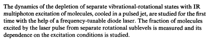 The dynamics of the depletion of separate vibrational-rotational states with IR multiphoton excitation of molecules, cooled in a pulsed jet, are studied for the first time with the help of a frequency-tunable diode laser. The fraction of molecules excited by the laser pulse from separate rotational sublevels is measured and its dependence on the excitation conditions is studied.