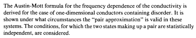 The Austin-Mott formula for the frequency dependence of the conductivity is derived for the case of one-dimensional conductors containing disorder. It is shown under what circumstances the "pair approximation" is valid in these systems. The conditions, for which the two states making up a pair are statistically independent, are considered.