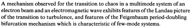 A mechanism observed for the transition to chaos in a multimode system of an electron beam and an electromagnetic wave exhibits features of the Landau picture of the transition to turbulence, and features of the Feigenbaum period-doubling bifurcation mechanism which is characteristic of few-mode systems.