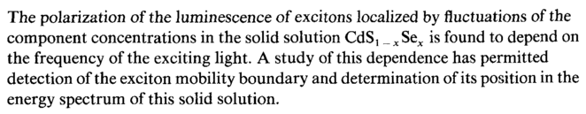The polarization of the luminescence of exchons localized by fluctuations of the component concentrations in the solid solution CdS, „xSex is found to depend on the frequency of the exciting light. A study of this dependence has permitted detection of the exciton mobility boundary and determination of its position in the energy spectrum of this solid solution.