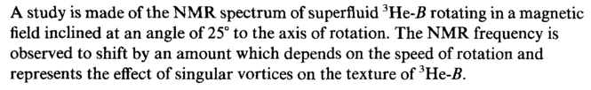 A study is made of the NMR spectrum of superfluid 3He-5 rotating in a magnetic field inclined at an angle of 25° to the axis of rotation. The NMR frequency is observed to shift by an amount which depends on the speed of rotation and represents the effect of singular vortices on the texture of 3He-i?.