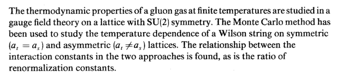 The thermodynamic properties of a gluon gas at finite temperatures are studied in a gauge field theory on a lattice with SU(2) symmetry. The Monte Carlo method has been used to study the temperature dependence of a Wilson string on symmetric (at — as) and asymmetric (at φαΞ) lattices. The relationship between the interaction constants in the two approaches is found, as is the ratio of renormalization constants.