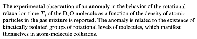 The experimental observation of an anomaly in the behavior of the rotational relaxation time Tx of the D20 molecule as a function of the density of atomic particles in the gas mixture is reported. The anomaly is related to the existence of kinetically isolated groups of rotational levels of molecules, which manifest themselves in atom-molecule collisions.