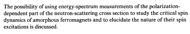 The possibility of using energy-spectrum measurements of the polarization-dependent part of the neutron-scattering cross section to study the critical spin dynamics of amorphous ferromagnets and to elucidate the nature of their spin excitations is discussed.