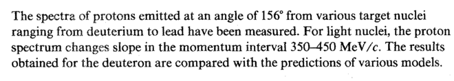 The spectra of protons emitted at an angle of 156° from various target nuclei ranging from deuterium to lead have been measured. For light nuclei, the proton spectrum changes slope in the momentum interval 350-450 MeV/c. The results obtained for the deuteron are compared with the predictions of various models.