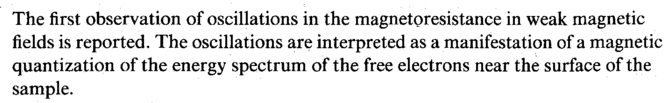 The first observation of oscillations in the magnetoresistance in weak magnetic fields is reported. The oscillations are interpreted as a manifestation of a magnetic quantization of the energy spectrum of the free electrons near the surface of the sample.