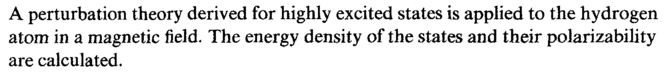 A perturbation theory derived for highly excited states is applied to the hydrogen atom in a magnetic field. The energy density of the states and their polarizability are calculated.